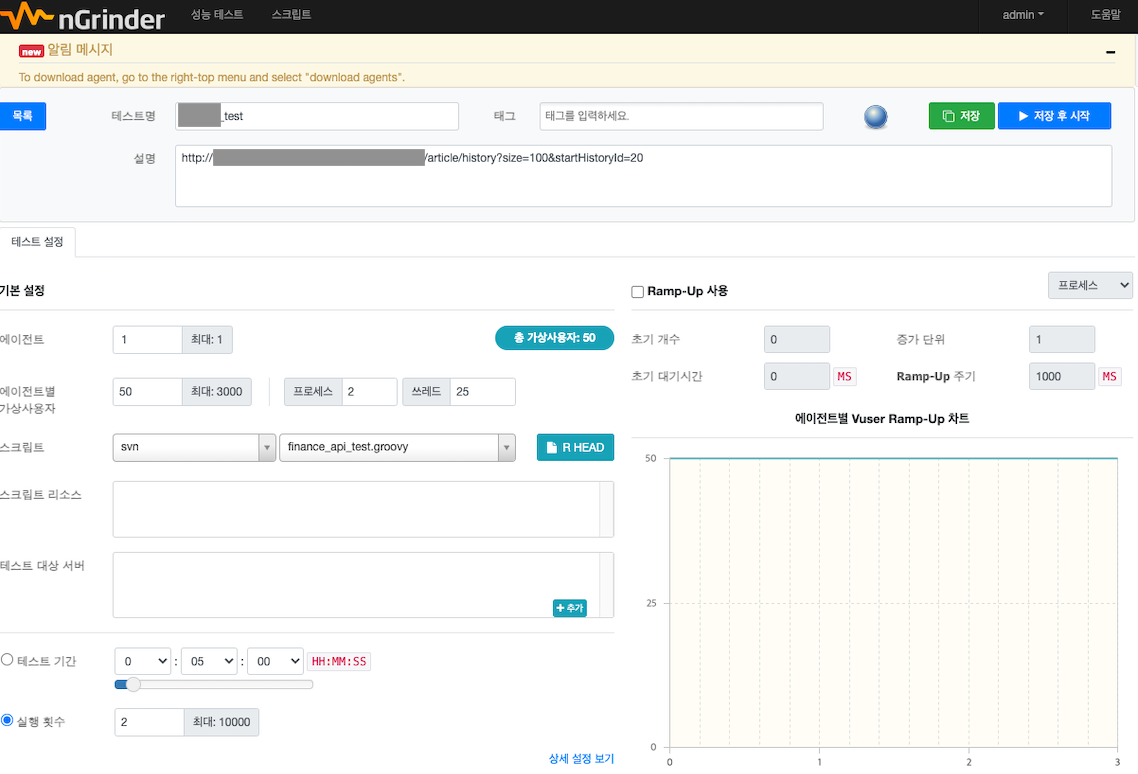 - 테스트 기간 : 실행되는 테스트 기간 설정