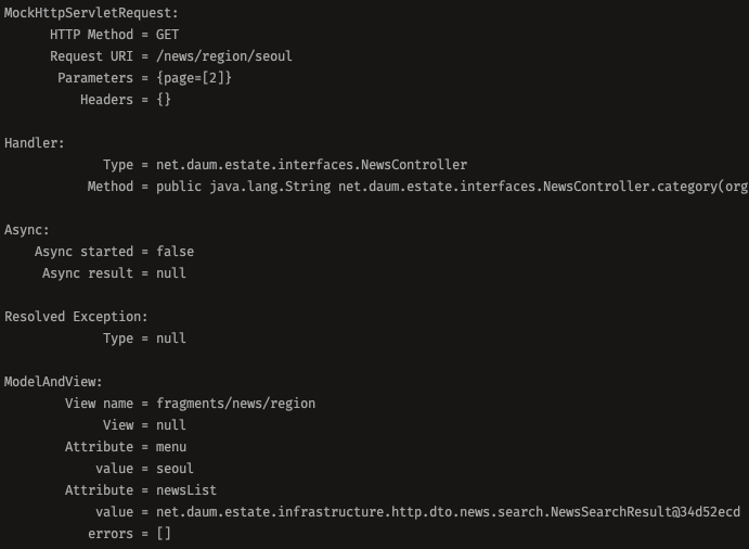 Mock 컨트롤러 호출 결과 로그