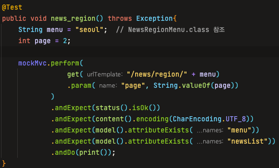 // model()은 ModelAndView attribute 응답값 검사에 사용