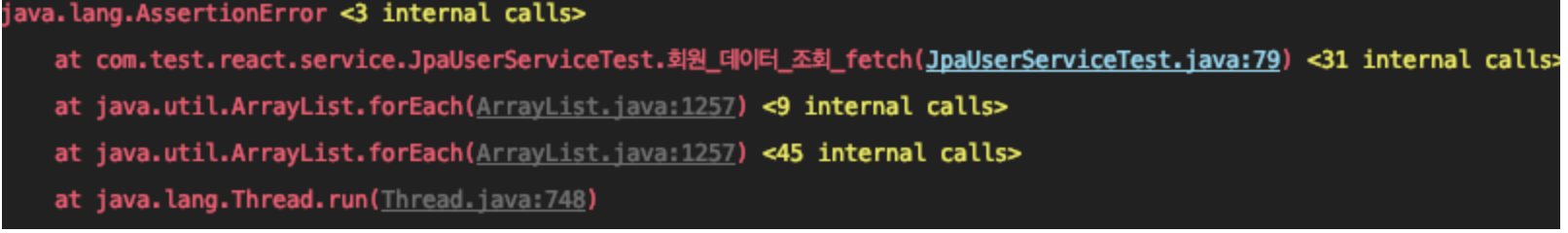- expected 값과 actual 값 미 일치 여부
